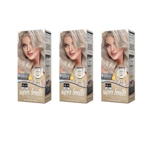 Coloração probelle super bonita 12.11 louro platina cinza intenso - kit com 3 unidades