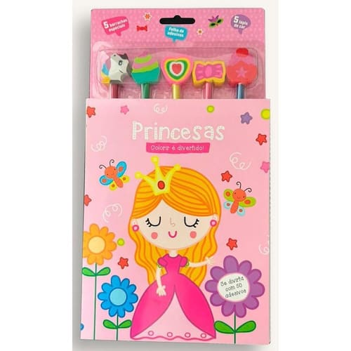 Este livro é muito divertido Preencha os espaços em branco com a mesma cor que está na borda do desenha e veja as lindas princesas ganharem vida, além disso você pode destacar do livro de maneira fácil e para te ajudar na pintura ele vem com cinco lápis lindos com borrachas especiais e muito fofas.