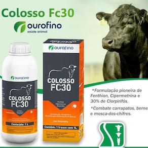 COLOSSO FC30 é indicado para o tratamento contra carrapatos Riphicephalus (Boophilus) microplus, mosca-dos-chifres (Haematobia irritans) e bernes (larvas de Dermatobia hominis) em bovinos.