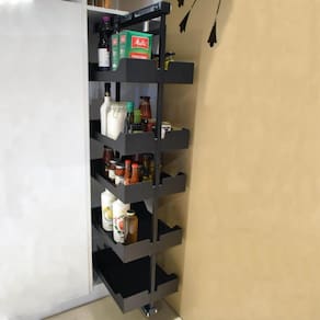 A coluna deslizante para condimentos é ideal para sua cozinha. O design inovador da coluna organizadora deslizante foi desenvolvido com 5 cestos para você melhor acomodar seus utensílios como alimentos, otimizando o ambiente já que os mesmos não ficarão espalhados. Pode ser instalado em sua cozinha, dispensa e onde mais desejar. Essa coluna deslizante Masutti conta com corrediça telescópica, agregando em funcionalidade para sua rotina.
