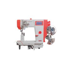 Máquina de costura industrial de coluna com transporte triplo eletrônica. Possui motor de passo para retrocesso automático e programação de pontos. Motor Direct Drive de 750W, velocidade máxima de 3.000 RPM. Levantamento e corte de calcador automáticos. Painel Touch Screen com ajuste digital do tamanho do ponto. Luz de LED integrada com 3 estágios. Funções automáticas incluem parada de agulha automática (em cima e/ou embaixo), controle de velocidade, corte de linha automático, levantador de calcador automático e posicionador de agulha automático. Ideal para fabricação de calçados, bolsas, luvas, entre outros.Funções