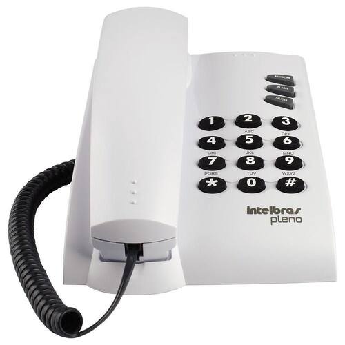 Com Fio Intelbras Pleno Sem Chave Cinza Artico 3 funções Flash, Redial/Rediscar e Mute/Mudo 3 volumes de campainha 2 timbres de campainha Posições mesa e parede Sinalização de linha pulso e tom Duração do flash 300 ms Não consome energia Sem chave Ean: 7896637609388