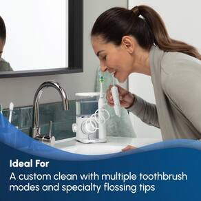 - UM DISPOSITIVO, EXPERIÊNCIA PERSONALIZADA: O fio dental Waterpik fornece 10 configurações seguras e eficazes e 5 pontas especiais, e a escova de dentes elétrica recarregável Sensonic oferece 3 modos (limpeza, remoção de manchas, cuidado da gengiva) para limpar completamente as superfícies dos dentes.