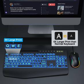 Teclado e mouse com fio, teclado retroiluminado de impressão grande com descanso de pulso e retroiluminação de 7 cores, teclados de computador iluminados fáceis de ver, combo de teclado USB e mouse para PC, Windows e laptop. SABLUTE - ?Design de impressão grande? O teclado retroiluminado com impressão grande SABLUTE apresenta um design de fonte superdimensionado, ideal para idosos, estudantes, funcionários de escritório e pessoas com deficiência visual - ?Reduz a fadiga de digitação?Projetado com um apoio de palma e suporte inferior. O layout ergonômico do teclado reduz a fadiga e o desconforto do pulso durante o uso prolongado - ?Mouse confortável?A aderência ergonômica confortável e o design inferior antiderrapante reduzem a fadiga das mãos e cliques errados, enquanto o design com luz de fundo facilita a localização do mouse em ambientes com pouca luz. - ?Retroiluminação de 7 cores?Escolha entre 7 cores brilhantes e 4 modos de luz de fundo. A retroiluminação pode optar por ligar/desligar e ajustar o brilho, tornando-o mais conveniente para digitar em ambientes com pouca luz - ?Teclado recomendado para estudantes?Como um presente ideal para estudantes durante a temporada de volta às aulas, a fonte grande e o layout ergonômico do teclado não apenas melhoram a eficiência do aprendizado, mas também são um presente atencioso e prático que é uma excelente escolha para você ou seus parentes e amigos - ?Compatibilidade Plug and Play?Diga adeus ao incômodo de carregar; cabo USB de 1,6 m para facilitar a conexão com Windows, PCs, laptops, Vista, Mac OS e Chrome. Observação: as teclas multimídia podem não ser totalmente compatíveis com sistemas macOS