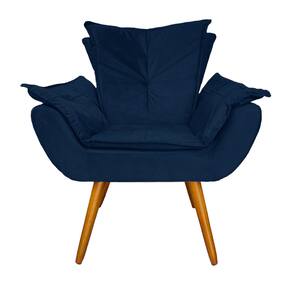 Combo 1 Poltrona e 1 Puff Para Recepção Consultório Clínica Apolo Suede Azul Marinho - LM DECOR