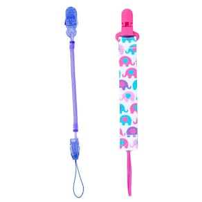 Combo 1 Prendedor de Chupeta Estampado e 1 Mola Pietra Baby Cor: Lilás + Elefantinho Kit Prendedor de Chupeta Pietra Baby - Segurança e Estilo em Um Só Pacote