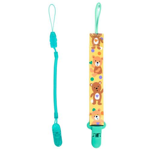 Combo 1 Prendedor de Chupeta Estampado e 1 Mola Pietra Baby Cor: Verde + Ursinho Kit Prendedor de Chupeta Pietra Baby - Segurança e Estilo em Um Só Pacote