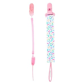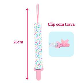 Combo 1 Prendedor de Chupeta Estampado e 1 Mola Pietra Baby Cor: Rosa + Confetti Kit Prendedor de Chupeta Pietra Baby - Segurança e Estilo em Um Só Pacote
