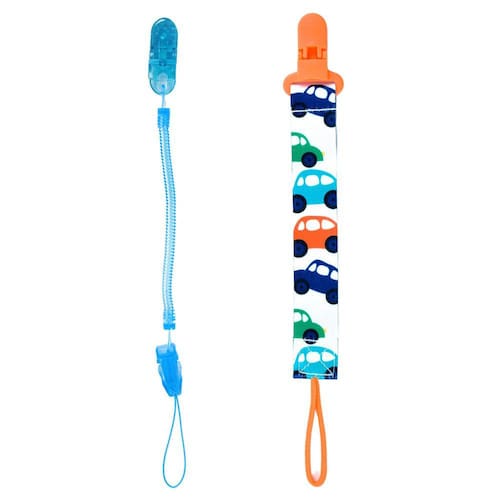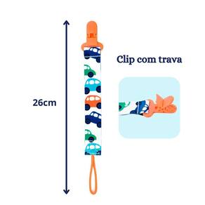 Acabamento primoroso com tecido resistente e estampas encantadoras. Compatível com a maioria dos modelos de chupetas. Fixação segura com mecanismo jacaré. Variedade de cores e estampas para combinar com o estilo do seu bebê. Benefícios do Kit: