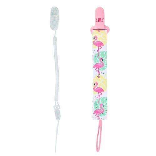 Combo 1 Prendedor de Chupeta Estampado e 1 Mola Pietra Baby Cor: Branco + Flamingo Kit Prendedor de Chupeta Pietra Baby - Segurança e Estilo em Um Só Pacote