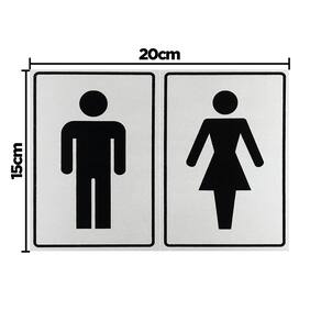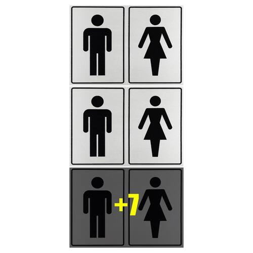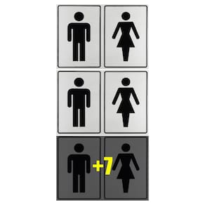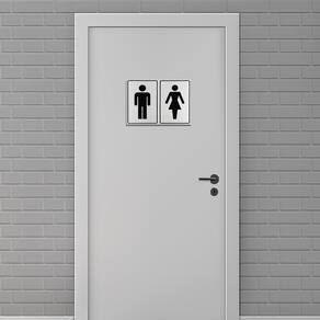 Neste Kit contém 10 unidades de placas com a escrita "Banheiro Masculino / Feminino".
