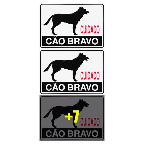 Neste Kit contém 10 unidades de placas com a escrita "Cuidado Cão Bravo".