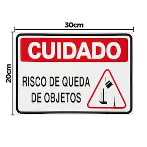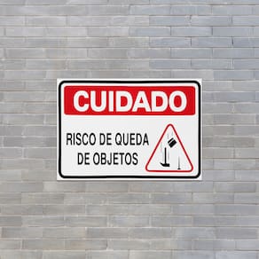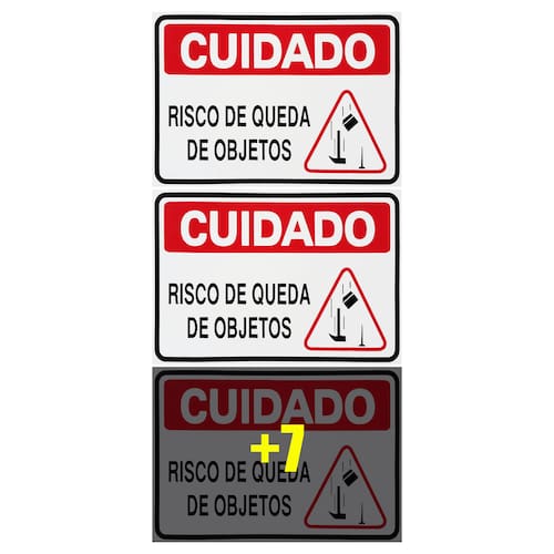 Neste Kit contém 10 unidades de placas com a escrita "Cuidado Risco De Queda De Objetos".