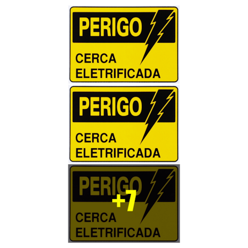 Neste Kit contém 10 unidades de placas com a escrita "Perigo Cerca Eletrificada".