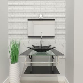 Itens inclusos: Gabinete de Vidro 60cm para banheiro San Marino Inox, composto de bancada de vidro, cuba de vidro, prateleira da bancada, espelheira, válvula clic, estrutura e porta toalha Inox e kit parafusos completo para instalação.