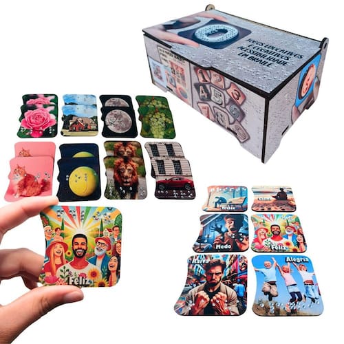 Combo 2 jogos em Braile Jogo da Memória 8 pares e Jogos das Emoções + caixa mdf