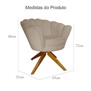 Combo 2 Poltronas Decorativa Com Base Giratória de Madeira Pétala Suede Cappuccino - LM DECOR - Bege Médio