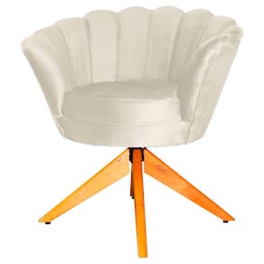 Combo 2 Poltronas Decorativa Com Base Giratória de Madeira Pétala Veludo Bege - LM DECOR
