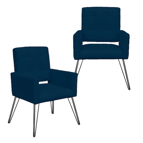Combo 2 Poltronas Decorativas Para Escritório Pés de Ferro Camila Suede Azul Marinho - LM DECOR