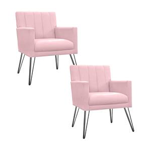 Combo 2 Poltronas Estofadas Para Consultório Pés de Ferro Cecília Suede Rosa Bebe - LM DECOR