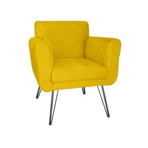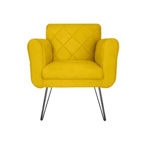 Combo 2 Poltronas Estofadas Sala Comercial Pés de Ferro Isabella Corano Amarelo - LM DECOR