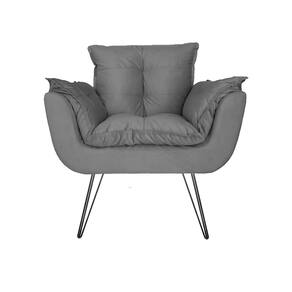 Combo 2 Poltronas Estofadas Sala Comercial Pés de Ferro Opala Suede Cinza - LM DECOR