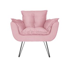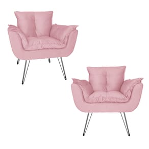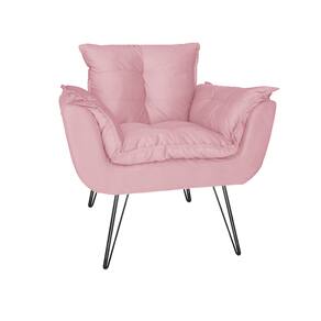 Combo 2 Poltronas Estofadas Sala Comercial Pés de Ferro Opala Suede Rosa Bebe - LM DECOR