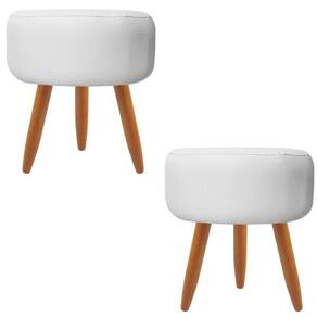 Combo 2 Puffs Decorativos Redondo Pé Palito-corino Branco
