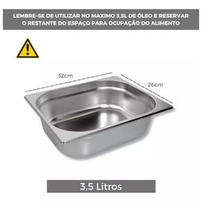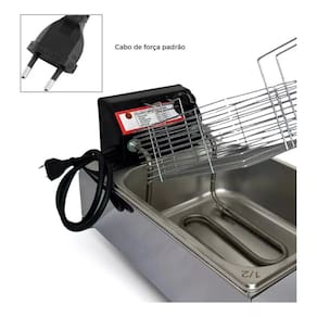 Bem-vindo à Click Shop Fritadeira Elétrica em Aço Inox - Alimentos Crocantes e Saborosos com Praticidade e DurabilidadeDescubra o segredo para preparar alimentos irresistivelmente crocantes e saborosos com nossa Fritadeira Elétrica em Aço Inox. Fritando na temperatura certa, você preserva o sabor e as propriedades dos alimentos, prolonga a vida útil do óleo e garante resultados perfeitos com rapidez, economia e qualidade. Com recuperação rápida da temperatura ideal, seus alimentos ficam ainda mais crocantes e deliciosos. Diferenciais:controle Preciso de Temperatura: Termostato ajustável para frituras sempre no ponto certo.Construção Robusta: Base, cuba e cabeçote em aço inoxidável, garantindo durabilidade e resistência.Fritura Uniforme: Cesto aramado estanhado para uma fritura homogênea e resultados consistentes. Atenção:nossos modelos de fritadeiras de uma cuba 4 a 5 litros compartilham as mesmas características e dimensões. O volume total da fritadeira é de 6 litros, mas recomenda-se utilizar até 4 litros para evitar transbordamento do óleo durante o uso. Especificações Técnicas: Tensão: 110V ou 220V escolha no momento da compra Potência: 2500 Watts Dimensões da Cuba:Volume mínimo de óleo: 2 litros Volume ideal de óleo: 3 litros Volume máximo de óleo: 4 litros Capacidade total do tacho: 5 litros com transbordamento Comprimento: 295 mm Largura: 235 mm Profundidade: 100 mm Dimensões do Cesto de Fritura: Comprimento: 225 mm Largura: 160 mm Profundidade: 80 mm Dimensões da Base em Aço Inox: Comprimento: 400 mm Largura: 270 mm Altura com cabeçote: 240 mm Peso Total: 2,25 kg Material: Cuba: Aço Inox Base: Aço Inox Cesto de Fritura: Aramado estanhado Adquira agora sua Fritadeira Elétrica em Aço Inox e transforme sua forma de cozinhar, garantindo sempre frituras perfeitas e saborosas do vendedor: 07 dias