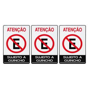 Neste Kit contém 3 unidades de placas com a escrita "Atenção Proibido Estacionar Sujeito A Guincho".