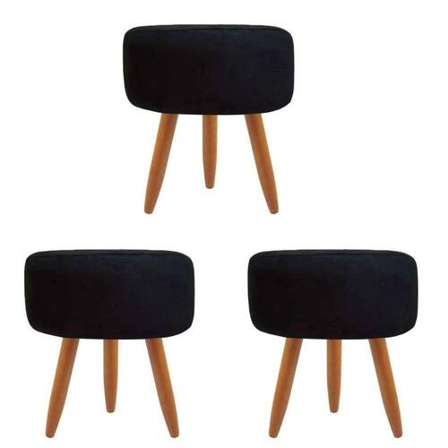 Combo 3 Puffs Decorativos Redondo Pé Palito-suede Preto