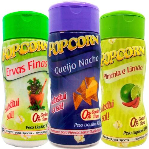 Combo 3 Temperos Para Pipoca Popcorn Sabores - Ervas Finas, Pimenta E Limão E Queijo Nacho Tempero para pipoca.