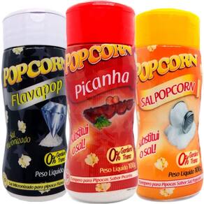 Combo 3 Temperos Para Pipoca Popcorn Sabores - Picanha, Flavapop Manteiga E Sal Popcorn Tempero para pipoca.