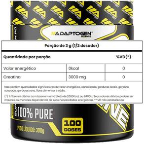 Creatina 100% Pura Adaptogen A Creatina é um dos suplementos alimentares com mais estudos comprovando sua eficácia. Ela é um aminoácido de origem animal, mas que também é produzida pelo nosso próprio corpo. A função da Creatina é regenerar o ATP, que é a principal fonte de energia do nosso corpo. Portanto, quando há o de Creatina em nosso organismo, conseguimos manter o exercício por mais tempo, além de puxar mais carga, isto é, a Creatina te proporciona maior força e resistência. Além disso, ela é Utilizado para preservar a massa muscular de idosos e prevenir doenças como o Alzeheimer e o Parkinson. Como tomar Creatina Sempre recomendamos a consulta a profissional de nutrição. Porém, de acordo com a ANVISA, o recomendável é a ingestão diária de 3g, visto que nosso corpo já produz 2g. No pré-treino, ela te ajudará com força e resistência. Já no pós-treino, a Creatina auxiliará na recuperação muscular. A Creatina Platinum é um produto com qualidade premium, aprovado pela ANVISA e entrega 100% do que está no rótulo. Todos os produtos da Adaptogen Science passam por rigorosos testes antes de serem distribuídos, prática que faz com que os consumidores confiem e atestem a qualidade dos suplementos que estão consumindo. A Creatina Platinum é um produto com qualidade Premium. - Força para os treinos - Aumento de resistência - Ganho de massa magra - Melhora do desempenho Instruções de uso Produto indicado para adultos acima de 19 anos . Tome diariamente uma porção com água ou suco pela manhã, ao acordar ou depois do treino, Nos dias em que não houver treino, após a refeição. Ingredientes Creatina monohidratada. Não contém Glutén. Informação Nutricional Suplemento alimentar de creatina em pó, auxilia no aumento do desempenho físico durante os exercícios repetidos de curta duração e alta densidade.