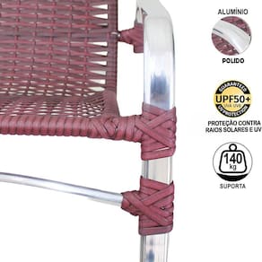 Fabricado em Alumínio Polido, mais Leve e Resistente do que o Ferro, podendo ficar exposto ao tempo, pois Não enferruja, e sua Fibra Sintética possui Proteção UV, proporcionando Resistência ao Sol e a Chuva.
