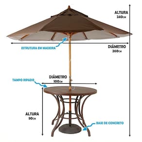 Combo 4 Cadeiras Ascoli Fibra Cor Cappuccino + Mesa Ripado + Central Marrom- Ideal Jardim, Piscina