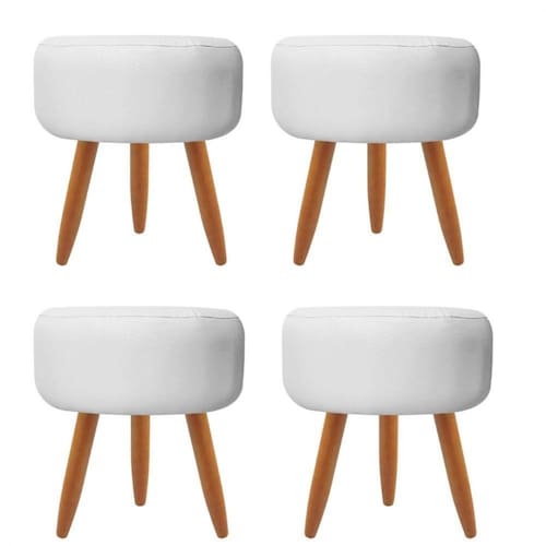 Combo 4 Puffs Decorativos Redondo Pé Palito-corino Branco