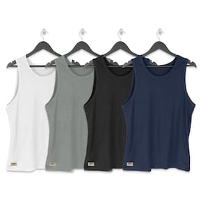 Este kit de regatas masculinas em algodão é a escolha perfeita para quem busca conforto em suas roupas. Com quatro unidades confortáveis nas cores azul, cinza, branco e preto, você terá peças ideais para usar no dia a dia.