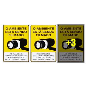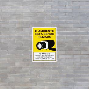 Neste Kit contém 6 unidades de placas com a escrita "O Ambiente Está Sendo Filmado. As Imagens São Confidenciais E Protegidas Nos Termos Da Lei".