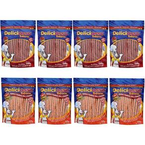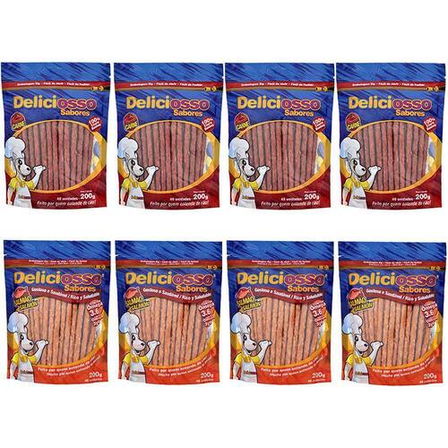 Combo composto por 4 pacotes de Deliciosso Carne 200g e 4 pacotes de Deliciosso Salmão 200g.