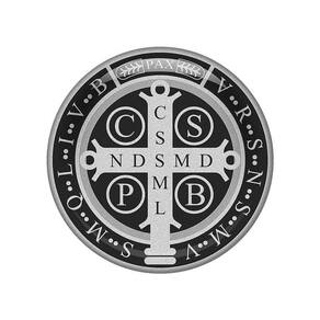 Adesivo Resinado com Medalha de São Bento e a inscrição "A cruz sagrada seja a minha Luz!". Leve a benção para o seu veículo!