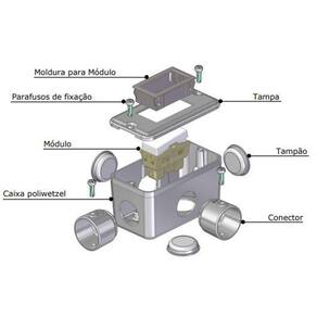 O combo é composto por: Caixa, Tampa, 2 Conectores, 4 Tampões e Parafusos para fixação; Possuem tampas com moldura para utilização de módulos; As entradas não usadas ficam protegidas com tampões plásticos; Parafusos com tratamento especial organometálico ; Produto com acabamento prata abrilhantamento ; Produto conforme NBR 15701 Conduletes metálicos roscados e não roscados para sistemas de eletrodutos; Rosca padrão BSP paralela conforme ISO 2281 e ISO 2282; Possui terminal de aterramento em todas as bitolas; Produto versátil e prático, que permite diferentes combinações e conexões, que agilizam a instalação; Produto 100% Reciclável. Aplicação