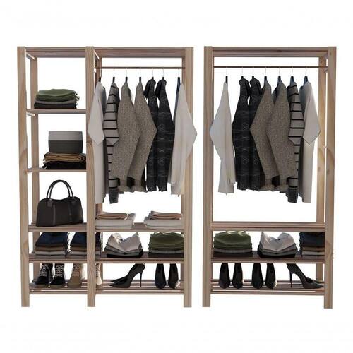 Combo Estantes Araras John + John Max - Estante arara em madeira maciça reflorestada;- Compra direto de ;- Perfeita para organizar e otimizar espaços;- Ideal para quartos, lavanderias, closets e para espaçoscomerciais;- Estante arara com prateleiras e estrutura em madeira maciça dePinus..