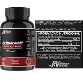 IN-Guaraná+ é composto de Guaraná, um energético natural, capaz de auxiliar na manutenção do estado de alerta e melhora das performances física e cognitiva. É fonte natural de Cafeína, Flavonoides, Vitaminas do complexo B, Vitamina A, Magnésio e Zinco.