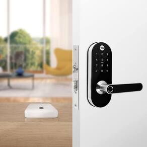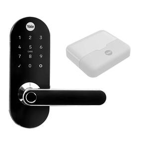 COMBO - Fechadura Digital YMC 420 D com Zigbee integrado + Hub - Abre com APP, biometria, senha e cartão A YMC 420 D veio para agregar o que há de melhor em termos de conectividade. A Fechadura Digital YMC 420 D possui integração com o sistema Yale Connect, que por meio do Hub poderá controlar e gerenciar sua fechadura por aplicativo, diretamente no seu celular, tablet ou computador. Além disso, ela é compatível com todos os dispositivos Alexa em conjunto com o Hub Yale Connect possibilitando trancar e solicitar o status da fechadura via comando de voz através da skill Yale Connect. Exclusivamente para os dispositivos Echo 4, Echo Studio e Echo Show 10 é possível conectar a fechadura sem o Hub Yale Connect possibilitando abrir, trancar e verificar o status da fechadura utilizando o aplicativo nativo da Alexa. Peso: 4.3 kg Dimensões: 9 × 37 × 36 cm Aplicação: Portas de madeira ou metálicas Espessura da porta: 35 a 70 mm Sentido de abertura da porta: Abertura para dentro ou para fora Lado de abertura da porta: Abertura para o lado direito ou esquerdo Tipo de mecanismo: Embutir – Mecanismo completo Tipo de abertura: Senha, Biometria, Chave de Segurança, Cartão de Proximidade e App Yale Connect (opcional) Número de usuários: Até 100 com Senha, até 100 com biometria e até 100 com Cartão de proximidade Sensor de leitura: Scanner de Impressão Digital com Resolução de 500 dpi Cartão de proximidade Yale: Aplicavél Teclado: Tela ao toque Alimentação: 4 baterias AA Autonomia: 3,500 a 3,600 acionamento Entrada para bateria externa: Mini USB Dimensões embalagem: AxLxP 36x37x9 cm Dimensões da parte externa AxLXP 32x7x4 cm Dimensões da parte interna: AxLXP 33x7x4 cm Acabamento: Black Piano Resistência ao clima: Ambiente interno. Para ambiente externo é necessário que haja uma proteção contra a ação direta do sol e da chuva Peso do produto com embalagem: 4,3 Kg