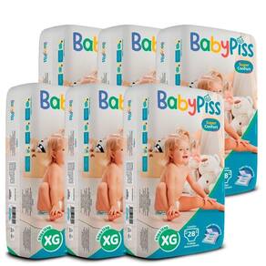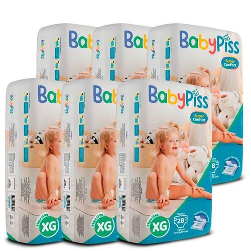 Combo com 168 Fraldas acompanha: 06 Pacotes de Fralda Infantil Descartável Super Confort BabyPiss XG com 28 fraldas cada.