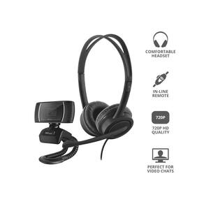 Pronto para vídeo chamadas Não importa se você trabalha em casa ou se está no escritório, as videochamadas são a nova maneira fácil de se comunicar com colegas, parceiros de negócios e familiares em todo o mundo. O Kit para Home Office Trust Doba 2-em-1 possui uma webcam HD e um fone de ouvido confortável, para que você possa ligar para qualquer pessoa com áudio e imagem nítidos, além de ser compatível com todos os aplicativos de chat de vídeo. Vídeo claro A HD Webcam oferece uma imagem nítida durante as chamadas em resolução de 720p. Graças ao balanço de branco automático, a webcam cria imagens nítidas em qualquer condição de luz, para que você possa se concentrar em sua reunião. Som Claro Graças ao confortável headset, você pode ter certeza de que ouvirá o que sua equipe tem a dizer e que eles ouvirão cada palavra sua. As almofadas grossas cuidarão do seu conforto, por isso não importa se uma chamada demorar mais do que o esperado. Este conjunto plug-and-play facilita as vídeo chamadas. Compatível com o Hangouts, Teams, Zoom, etc. Elegante webcam HD de 720 p, ideal para chamadas de vídeo Suporte da câmara web multidirecional: fixe na tela ou apoie sobre a mesa