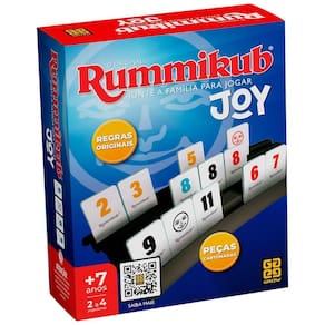 Um kit composto por dois Jogos1 - Jogo Rummikub JoyRummikub Joy é uma versão com as mesmas regras do Rummikub Clássico, porém com peças cartonadas e uma embalagem menor, deixando mais acessível a prática desse jogo de sucesso mundial.Supere seus oponentes com ótimas estratégias e movimentos precisos. Seja o primeiro a usar todas as suas peças e dizer Rummikub2 - Jogo Rummikub Joy PalavrasO Clássico Rummikub agora em uma versão com letras: o objetivo é formar palavras longas para vencer.As palavras completas podem ser colocadas na mesa, ou letras podem ser adicionadas às palavras atuais Marca: Não Informado Ean: 9900000020767