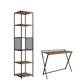 Conjunto de dois móveis funcionais e estilosos para compor escritórios, salas, quartos, cozinhas ou pequenos espaços. Ideal para quem busca praticidade sem abrir mão do design, o kit inclui uma mesa dobrável versátil e uma estante industrial com cinco prateleiras.