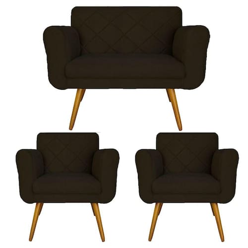 Combo Namoradeira e 2 Poltrona Decorativa Para Escritório Isabella Suede Marrom - LM DECOR